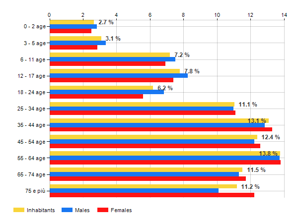 Age classes per gender and related impact, average age and old-age index in