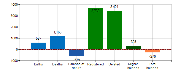Resident population and its related trend, balance of nature and migratory balance, birth rate, death rate, growth rate and migration ratein