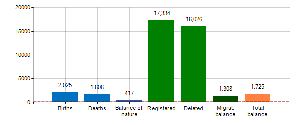 Resident population and its related trend, balance of nature and migratory balance, birth rate, death rate, growth rate and migration ratein