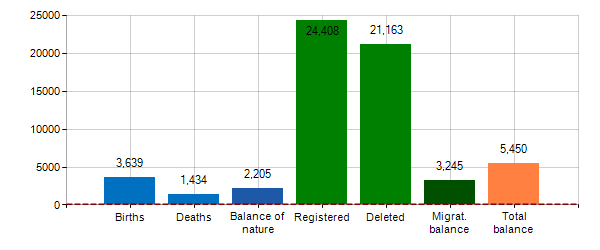 Migration rate = (Migration balance / average Inhabitants ) * 1,000
