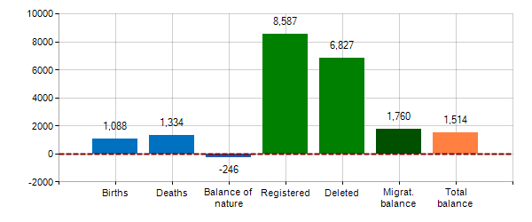 Migration rate = (Migration balance / average Inhabitants ) * 1,000