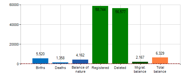 • Growth rate[7]: 16.9‰ ( 57° place among 374 municipalities)