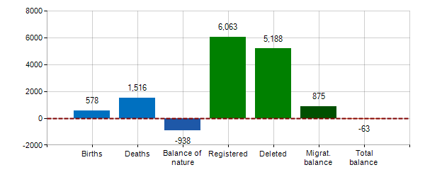 : -0.6‰ ( 347° place among 374 municipalities)