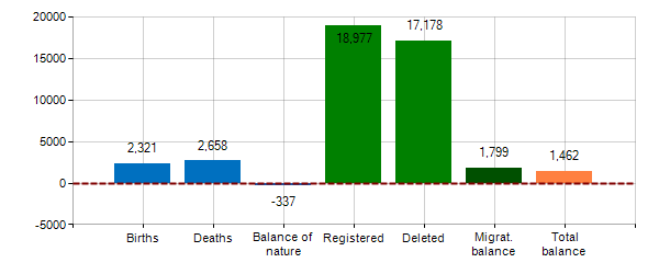 Resident population and its related trend, balance of nature and migratory balance, birth rate, death rate, growth rate and migration ratein