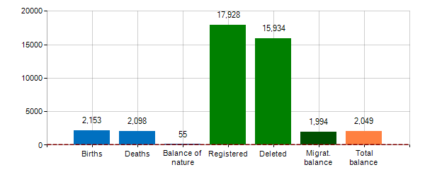 Resident population and its related trend, balance of nature and migratory balance, birth rate, death rate, growth rate and migration ratein