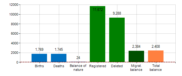 Migration rate = (Migration balance / average Inhabitants ) * 1,000