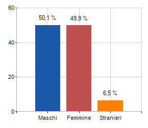 e relativa densità abitativa, abitanti per sesso e numero di famiglie residenti, età media e incidenza degli stranieri