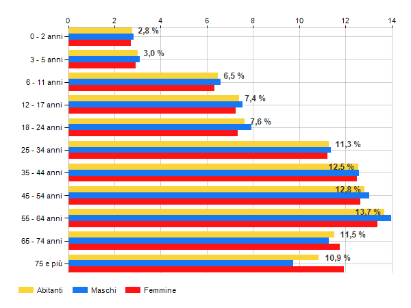 è al 197° posto su 565 comuni per % di residenti con più di 64 anni
