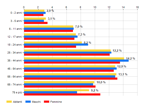 è al 166° posto su 565 comuni per % di residenti con meno di 15 anni