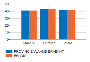 Classi di età per sesso e relativa incidenza, età media e indice di vecchiaia nella Provincia di PROVINCIE VLAAMS-BRABANT
