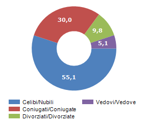 è al 206° posto su 565 comuni per % di Divorziati/e