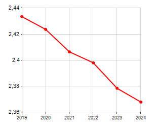 è al 196° posto su 565 comuni per numero di componenti medi della famiglia