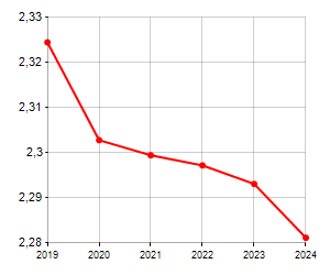 è al 382° posto su 565 comuni per numero di componenti medi della famiglia