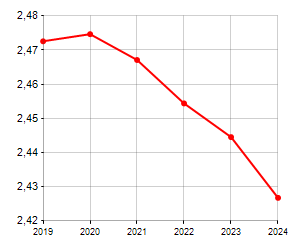è al 113° posto su 565 comuni per numero di componenti medi della famiglia