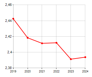 è al 146° posto su 565 comuni per numero di componenti medi della famiglia