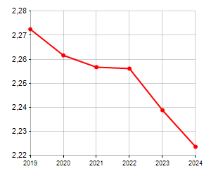 AnnoFamiglie (N.)Variazione % su anno prec.Componenti medi