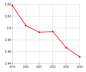 è al 85° posto su 565 comuni per numero di componenti medi della famiglia