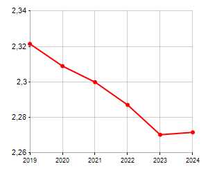 è al 408° posto su 565 comuni per numero di componenti medi della famiglia