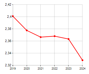 è al 273° posto su 565 comuni per numero di componenti medi della famiglia