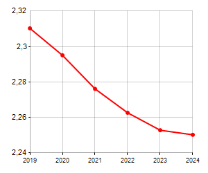 è al 448° posto su 565 comuni per numero di componenti medi della famiglia
