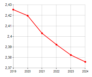 è al 175° posto su 565 comuni per numero di componenti medi della famiglia