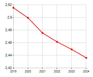 è al 100° posto su 565 comuni per numero di componenti medi della famiglia