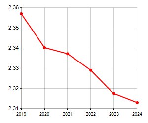 è al 309° posto su 565 comuni per numero di componenti medi della famiglia