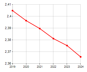 è al 203° posto su 565 comuni per numero di componenti medi della famiglia