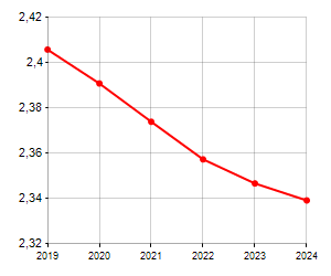 è al 253° posto su 565 comuni per numero di componenti medi della famiglia