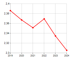 è al 327° posto su 565 comuni per numero di componenti medi della famiglia