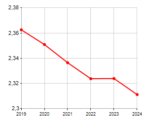 è al 315° posto su 565 comuni per numero di componenti medi della famiglia