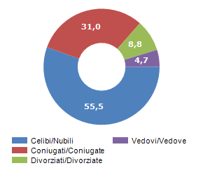 è al 51° posto su 565 comuni per % di Celibi/Nubili