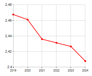 è al 132° posto su 565 comuni per numero di componenti medi della famiglia