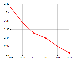 è al 332° posto su 565 comuni per numero di componenti medi della famiglia