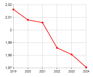 è al 553° posto su 565 comuni per numero di componenti medi della famiglia
