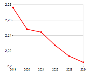 è al 493° posto su 565 comuni per numero di componenti medi della famiglia