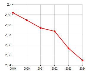 è al 242° posto su 565 comuni per numero di componenti medi della famiglia