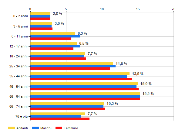 Classi di età per sesso e relativa incidenza, età media e indice di vecchiaia nella
