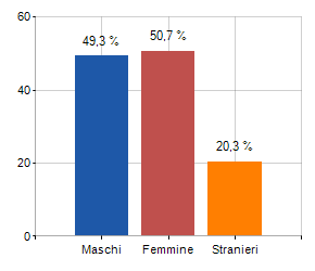 e relativa densità abitativa, abitanti per sesso e numero di famiglie residenti, età media e incidenza degli stranieri
