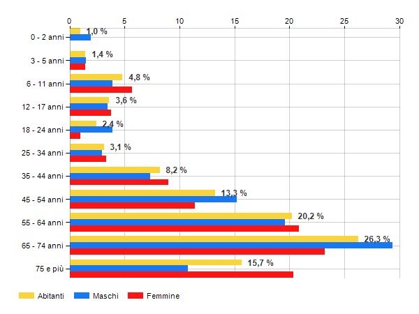 è al 23° posto su 10965 comuni per % di residenti con più di 64 anni