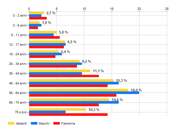 è al 11217° posto su 34956 comuni per % di residenti con più di 64 anni