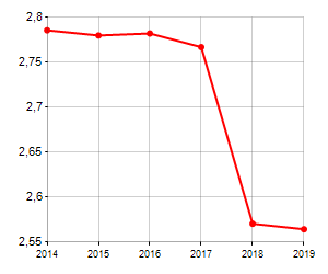 è al 5609° posto su 34956 comuni per numero di componenti medi della famiglia
