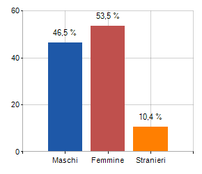 e relativa densità abitativa, abitanti per sesso e numero di famiglie residenti, età media e incidenza degli stranieri