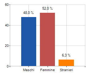 e relativa densità abitativa, abitanti per sesso e numero di famiglie residenti, età media e incidenza degli stranieri