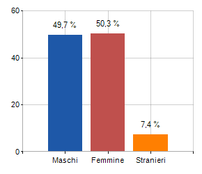 e relativa densità abitativa, abitanti per sesso e numero di famiglie residenti, età media e incidenza degli stranieri