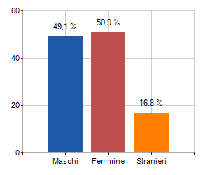 e relativa densità abitativa, abitanti per sesso e numero di famiglie residenti, età media e incidenza degli stranieri