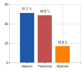 e relativa densità abitativa, abitanti per sesso e numero di famiglie residenti, età media e incidenza degli stranieri