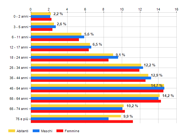 è al 1143° posto su 7896 comuni per % di residenti con meno di 15 anni