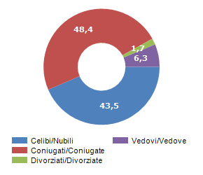 Famiglie residenti e relativo trend, numero di componenti medi della famiglia e relativo trend, stato civile: celibi/nubili, coniugati/e, divorziati/e, vedovi/e nel