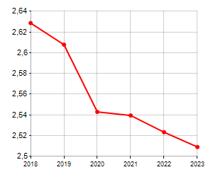è al 420° posto su 7896 comuni per numero di componenti medi della famiglia